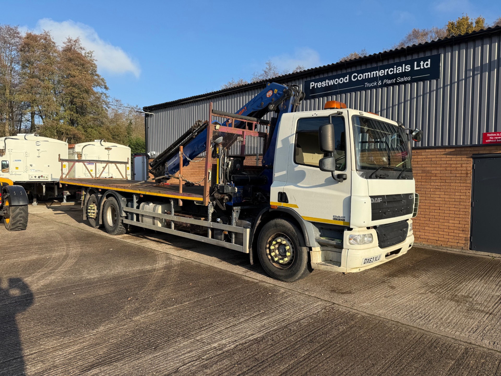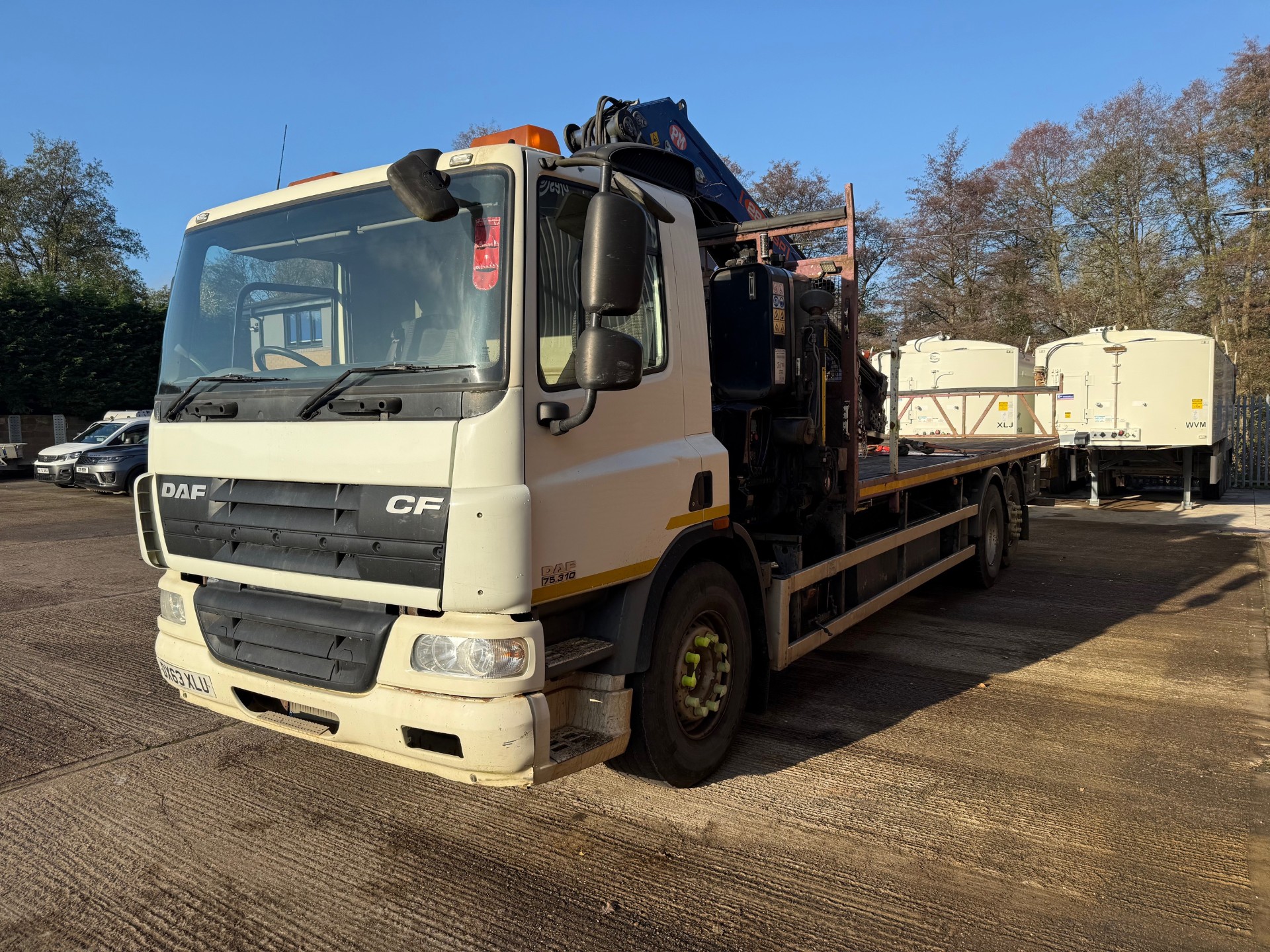 2013 DAF CF75/310 Crane flatbed. Euro 5, Manual gearbox. Rear lift axle. Fitted with Remote PM28.5 crane, 6 hydraulic extensions. V.G.C. Export welcome. £25,000+VAT. Call/Whatsapp- 07817305372